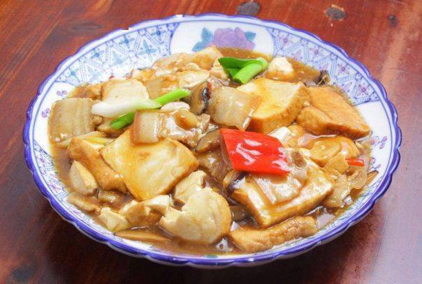 關(guān)鍵:老豆腐經(jīng)煎制后,燉制時(shí)可保持形態(tài)完整不碎。
