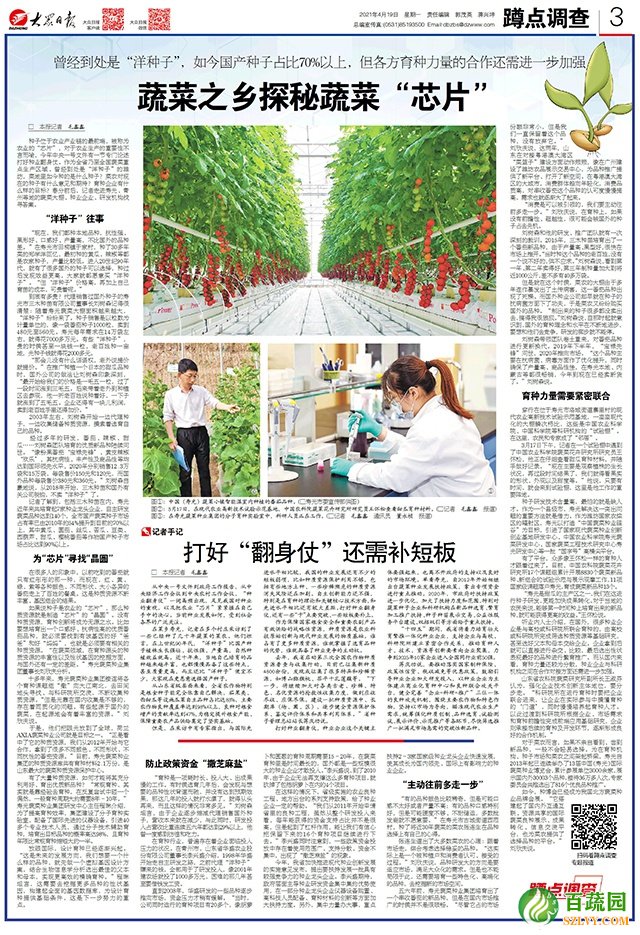 記者了解到,包括三木種苗在內(nèi),壽光近年來共培育起7家種業(yè)龍頭企業(yè),自主研發(fā)蔬菜品種達(dá)到140個,全市國產(chǎn)蔬菜種子市場占有率已由2010年的54%提升到目前的70%以上,其中黃瓜、圓茄、絲瓜、苦瓜、豆類、西葫蘆、甜瓜、櫻桃番茄等作物國產(chǎn)種子市場占比達(dá)到90%以上。