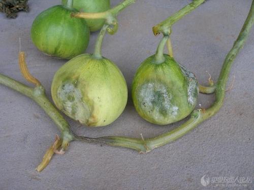 根莖部染病,初始產(chǎn)生暗綠色水漬狀病斑,病斑迅速擴(kuò)展、莖呈軟腐狀,有時(shí)長(zhǎng)達(dá)10厘米以上,植株萎蔫、青枯而死亡,但維管束不變色。幼苗染病,多始于嫩尖,產(chǎn)生水漬狀病斑,病情發(fā)展較快,萎蔫枯死,但不倒伏。葉片染病,初始產(chǎn)生暗綠色水浸狀斑點(diǎn),擴(kuò)展為近圓型或不規(guī)則大型的黃褐色病斑;天氣潮濕時(shí)全葉腐爛,并產(chǎn)生白色霉層;干燥時(shí)病斑極易破裂。莖染病,多在近地面莖基部開始,初始呈暗綠色水漬狀斑病部縊縮,成株期往往有幾處節(jié)受害,俗稱“節(jié)節(jié)爛”。南瓜果實(shí)染病,初始出現(xiàn)水漬狀淺褐色小斑,潮濕時(shí)病斑凹陷,并長(zhǎng)出一層稀疏的白色霉?fàn)钗铮床【逆吣夜:玩咦幽遥?,以后軟化腐爛,迅速向各方向擴(kuò)展,在病部產(chǎn)生白色霉層,最終導(dǎo)致病瓜局部或全部腐爛。發(fā)生特點(diǎn)此病由真菌鞭毛菌亞門甜瓜疫霉侵染引起。病菌以菌絲體、卵孢子和厚垣孢子隨病殘?bào)w在土中越冬。翌年春通過風(fēng)雨、灌溉水傳播。病菌發(fā)育的適宜溫度范圍很廣,在5——37℃之間,最適溫度為28——30℃,高濕是發(fā)病的決定性因素。雷雨過后,田間積水不能及時(shí)排出易誘發(fā)此病。多雨季節(jié)發(fā)病重,大雨過后暴晴最易發(fā)病流行。連作地、排水不良、澆水過多、施用未腐熟欄肥、通風(fēng)透光差的田塊發(fā)病較重。目前沅江市茶盤洲、泗湖山、共華等種植重點(diǎn)鄉(xiāng)鎮(zhèn)進(jìn)入了發(fā)病盛期。防治要點(diǎn)①實(shí)行非瓜類作物輪作3年以上,采用地膜覆蓋栽培,深溝高畦種植,施用充分腐熟有機(jī)欄肥。②種子處理:可用72.2%普力克水劑600倍液或64%殺毒礬可濕性粉劑800倍液浸種30分鐘后催芽。③選擇地勢(shì)高燥、排水良好的田塊,注意控制澆水次數(shù),雨后及時(shí)排水,加強(qiáng)通風(fēng)換氣,發(fā)現(xiàn)中心病株,及時(shí)拔除并銷毀。④藥劑防治:于發(fā)病初期選用50%安克可濕性粉劑2500倍液,25%阿米西達(dá)懸浮劑1000——1500倍液,或69%金雷水分散粒劑600——800倍液,或72.2%普力克水溶性液劑800倍液,或70%品潤(rùn)干懸浮劑500倍液,或72%克露可濕性粉劑800倍液,或52.5%抑快凈水分散劑3000倍液,或72.2%霜霉威水劑500倍液,或47%加瑞農(nóng)可濕性粉劑800倍液,或64%殺毒礬可濕性粉劑1000倍液等噴霧,每隔7——10天1次,連續(xù)防治3——4次。